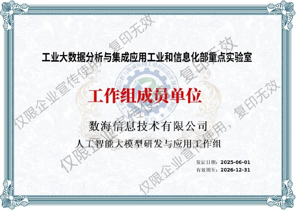 數(shù)海信息集團入選工信部重點實驗室人工智能大模型研發(fā)與應用工作組,助力工業(yè)大數(shù)據(jù)創(chuàng)新與應用??